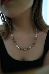 数年間買い集めていた天然石と淡水パールをミックスした一点物のネックレス。