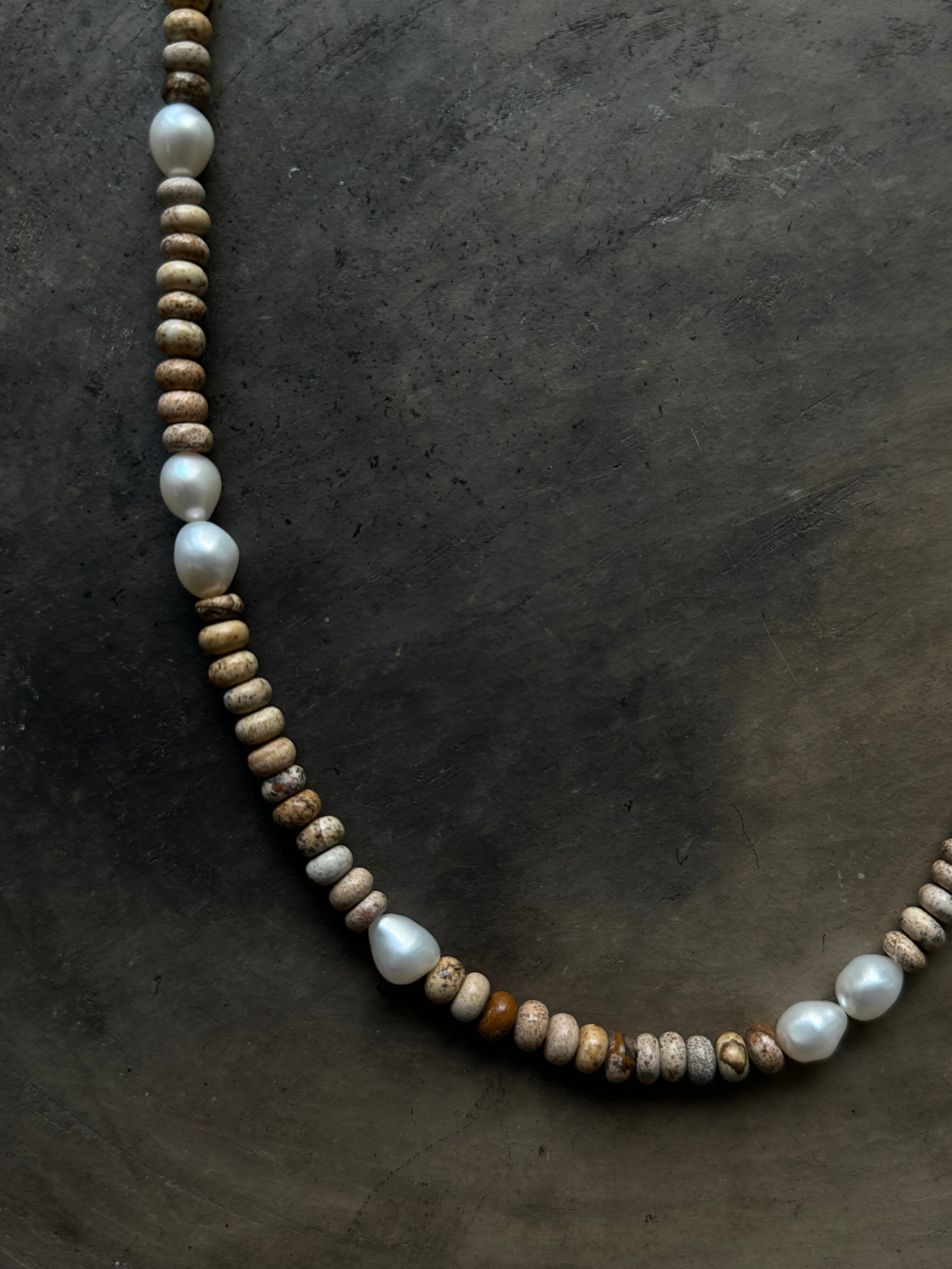 Natural stone & pearl mix Necklace【Picture Jasper】